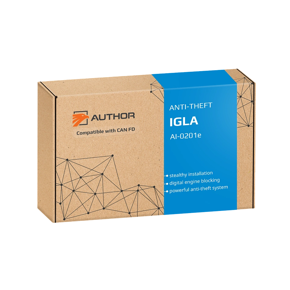 AUTHOR IGLA FD is a unique digital system designed to protect cars against theft or carjacking. Its innovative feature is the technology of blocking the engine via standard electric circuits, which does not require any extra wiring. The device supports cars equipped with the new high-speed CAN FD data transmission protocol.